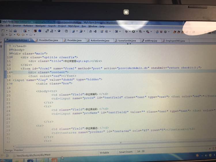 在做项目,在页面上增加新供应商。页面开发工具说13行报错。各路大神求救