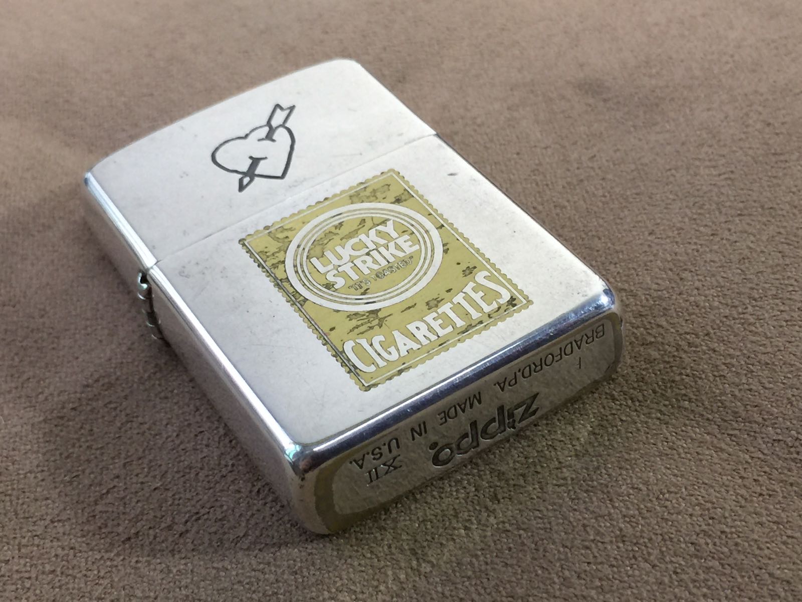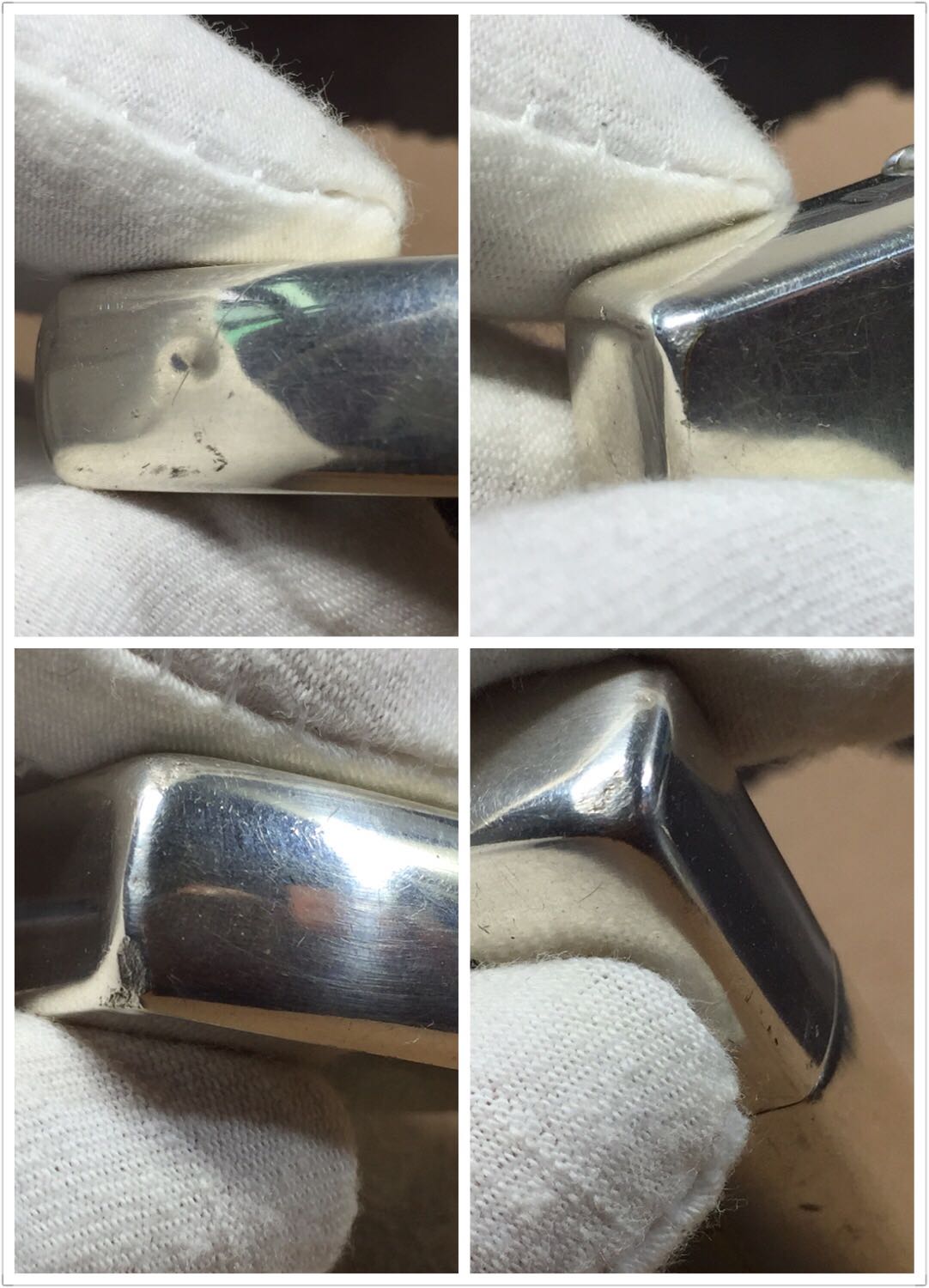 【具体描述】二手1996年6月 好彩 镀银抽奖机,反底刻。镀银底板蚀刻填漆工艺。机身正常使用擦丝划痕,底部镀层磨损露铜,顶部一处小凹点,边角磕碰微距拍出,定义差品。铰链正常,原配96G内胆打火强,黑纸盒包装。