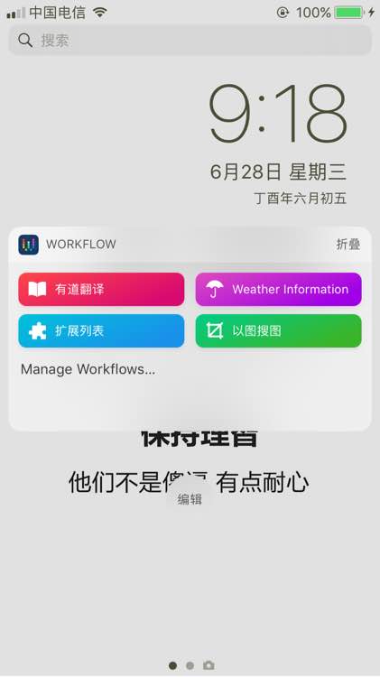 底下中间那个蓝块就是在通知中心显示。