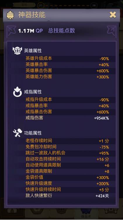 卡在这了,请大神看看现在我该怎么弄,是刷紫石,还是我的搭配有问题。属性都在下面了,英雄就这几个和炸弹人是橙色的,该洗满的都洗满了,神器就4个,升了几级,太费石头了,升不上去了。