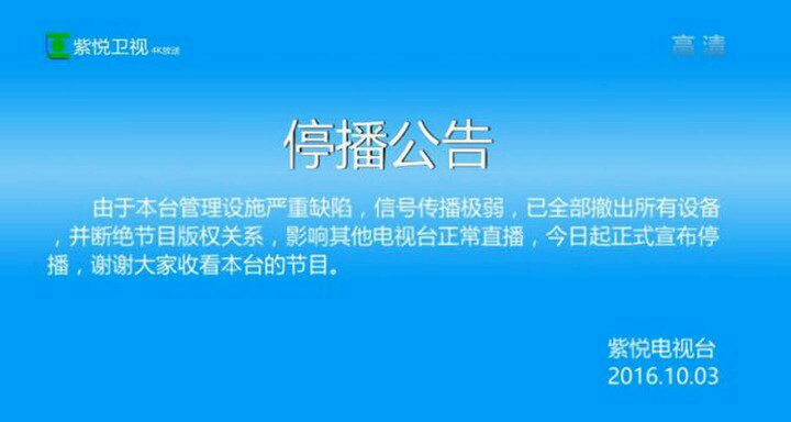 这是紫悦电视台停播的画面