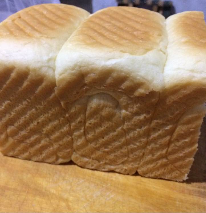 第一次用这个吐司膜具烤的吐司,中种面团没发满就考了,边角不是太直,不过还是很绵软的
