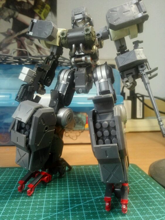 我还是蛮喜欢扩充包的腿的,而且手臂已经无缝粘死,后面空出来的那块也用胶板封住了..各种导弹舱的位置还没想好。改回逆足的话就用辉锤扩充包的做成四足吧,再添一对脚,背上多挂点导弹舱也不用担心支持力的问题