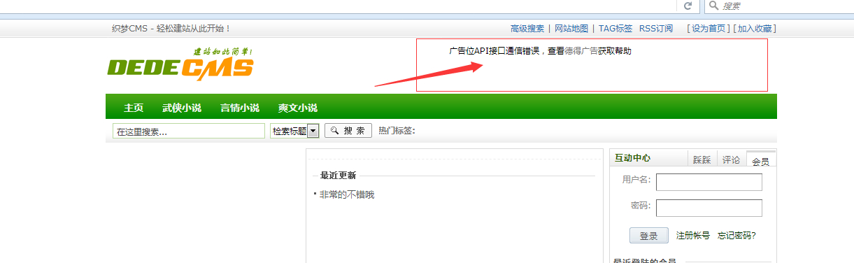 这个广告位API接口通信错误怎么解决啊?还有就是本地访问前端的很慢,刷新半天不出来.用的是V5.7SP2版本的。