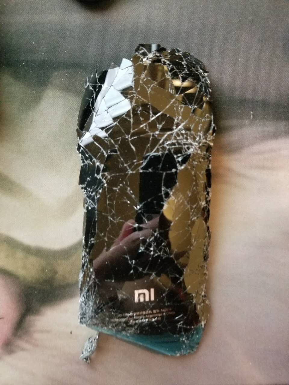 背面一直以为小米胡说,摸着感觉是塑料,其实是玻璃,拨了半小时把边框碎渣清理干净了。顺便说下,摔的时候在农药,捡起来看到游戏还在继续,就打完了这把。虽然输了,但我想和小伙伴们说,我真的尽力了。 红点的地方 向屏幕方向凹进去了。。。 飞毛腿的电池,国产老牌子,品控还是不错的。