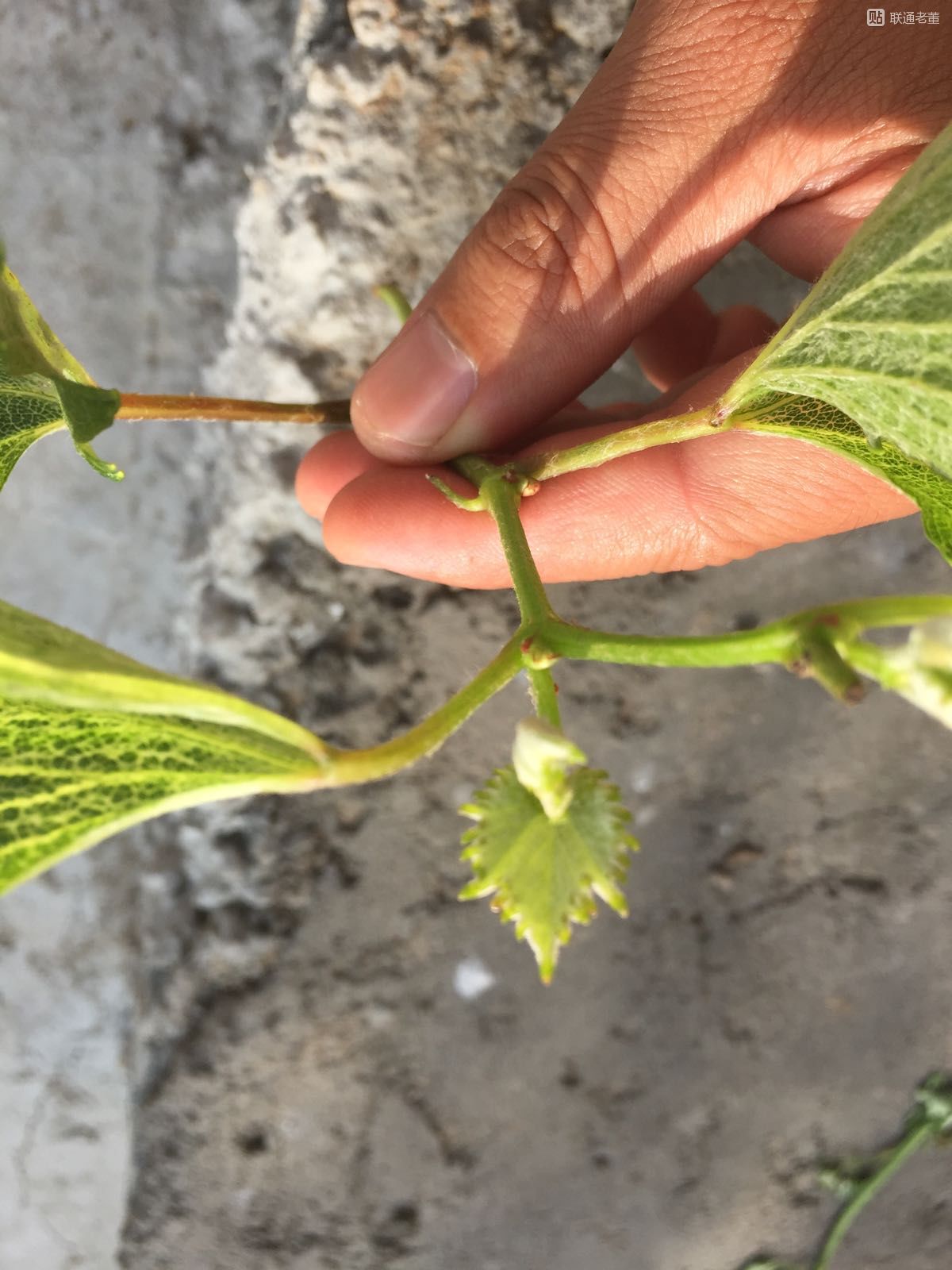 大家帮忙看看这个是扇叶病还是除草剂导致的?种了两颗巨峰都是这个毛病,症状一模一样,巨峰生长很慢,通过新发出的叶子可以判断出是什么病症吗?三颗金手指没有这样的叶片,但是叶片上有墨绿色绿色斑块,个别叶片半卷曲。图片为巨峰@行雨苗木