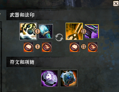 我反应比较慢,所以玩的半肉守护。武器带的节杖+火炬,这样就可以远远的输出,少承受伤害,免得死。另外一组武器带的单手剑和聚能器,拿来被近身和追人用。聚能器技能配合BD,可以得到保护BUFF(伤害减少33%),另外聚能器和单手剑都带一个格挡技能,会非常有效减低你的受到的伤害。右边技能带的一个格挡治疗,7、8、9是一个爆发连招。精英技能带的无敌,这个无敌还可以刷新F1F2F3。.
