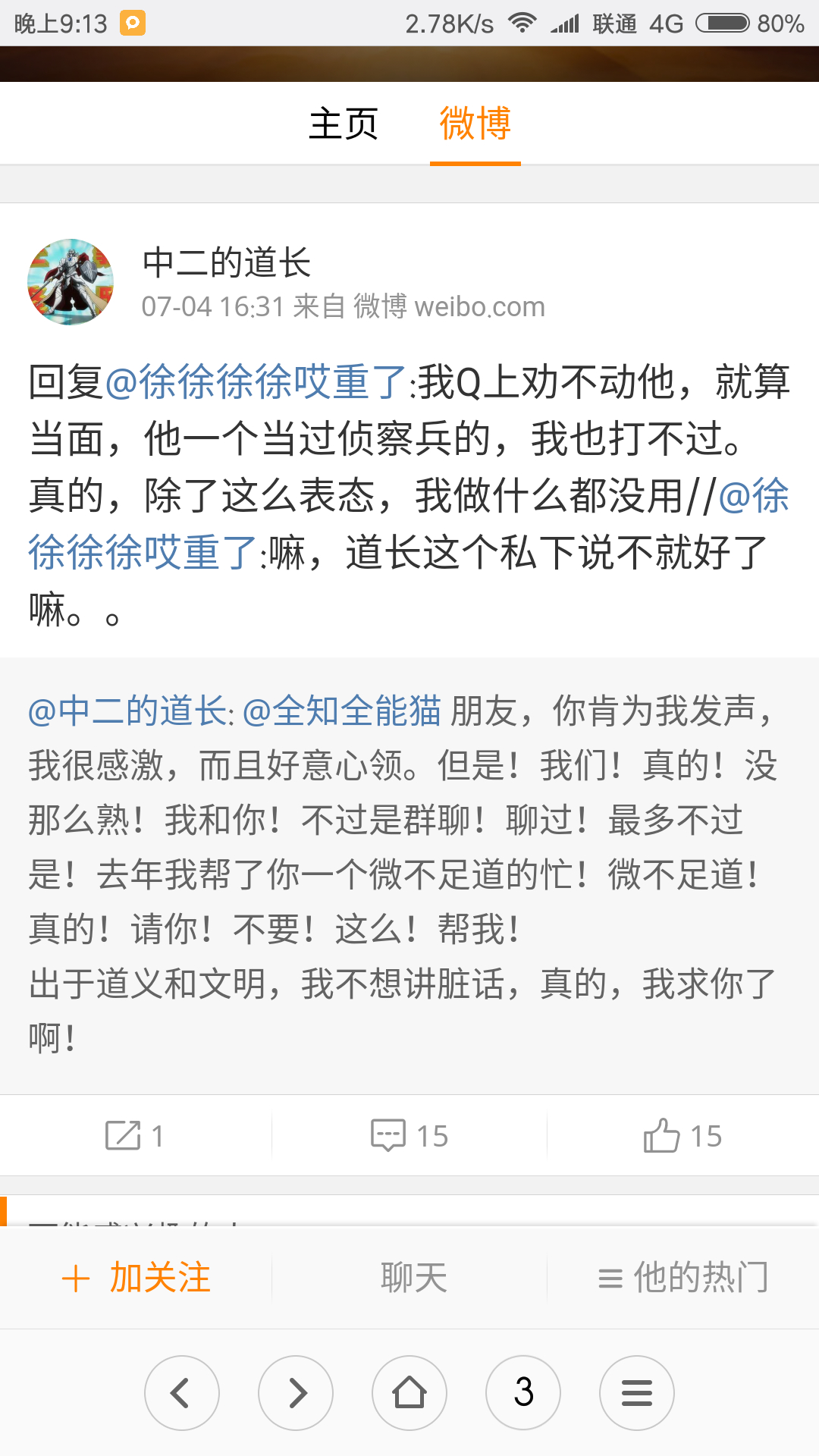 s1上也有人带节奏,还是在路人对道长遭遇鸣不平的帖子里面,不过被白贪狼白姥爷给压下去了