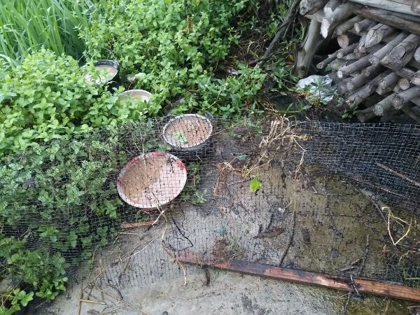 嘻嘻﹉早早的回到外婆家,绿油油的一片,蛙声十里,还有鸟叫,这些都是城里没有的。种好啦,本来放到这边一排,外婆说鸭子要来哚,只好委屈她们坐卡卡了,用这个烂网网挡到起。