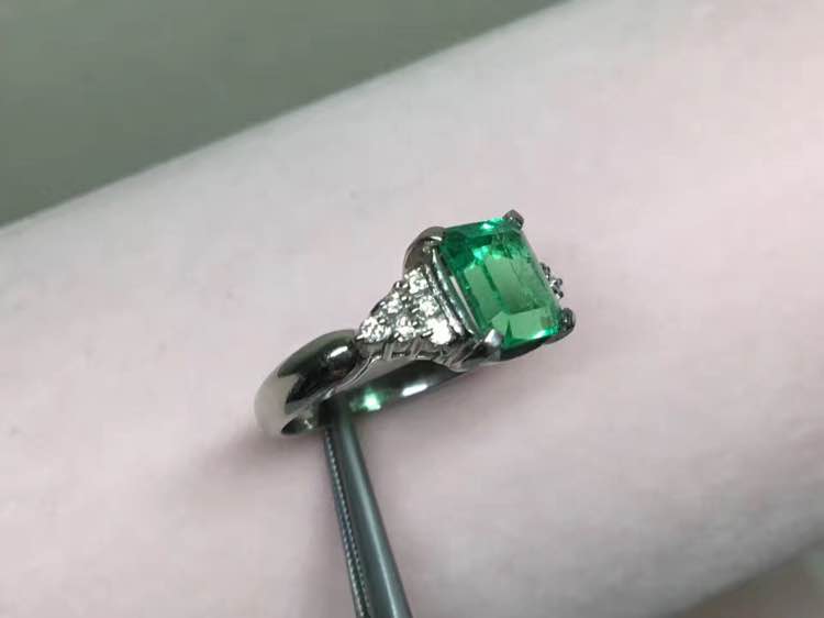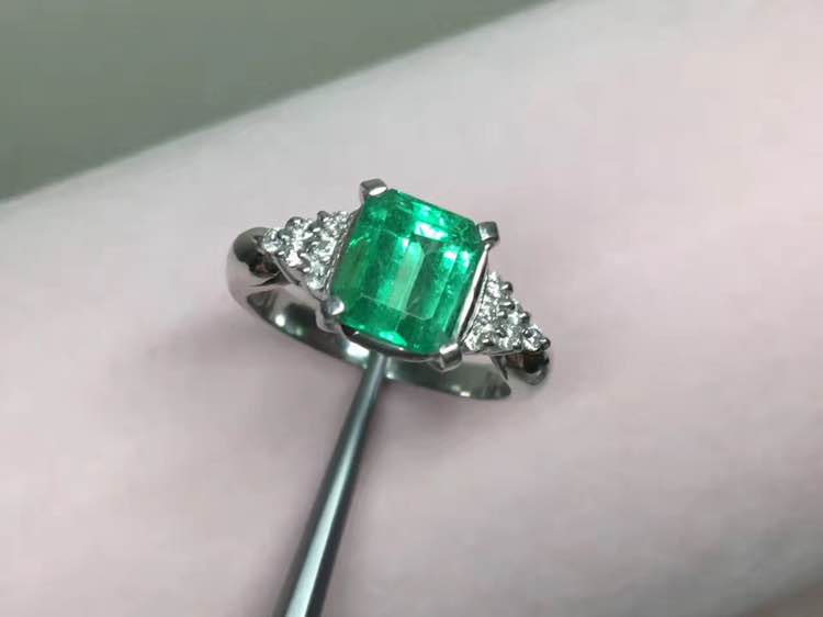 Pt900/铂金 祖母绿钻石戒指 祖母绿E1.64ct 钻D0.144ct 🈯️围10#