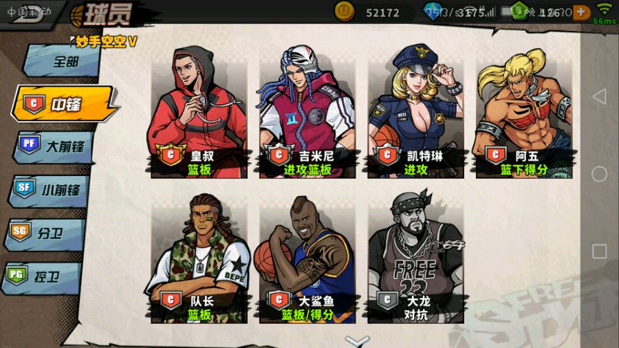 今天点子也幸,所有c都遇到了,所以玩了一下午略有心得,给观望的c们一点建议,首先先看技能,在大鲨鱼周围抢板时篮板值减百分之10,在篮下进攻时有一定几率让对手到底,倒地能力触发这个楼主只用睿智测试了,触发几率比较高,但就是篮下命中比较着急,空位都容易不进,比较尴尬