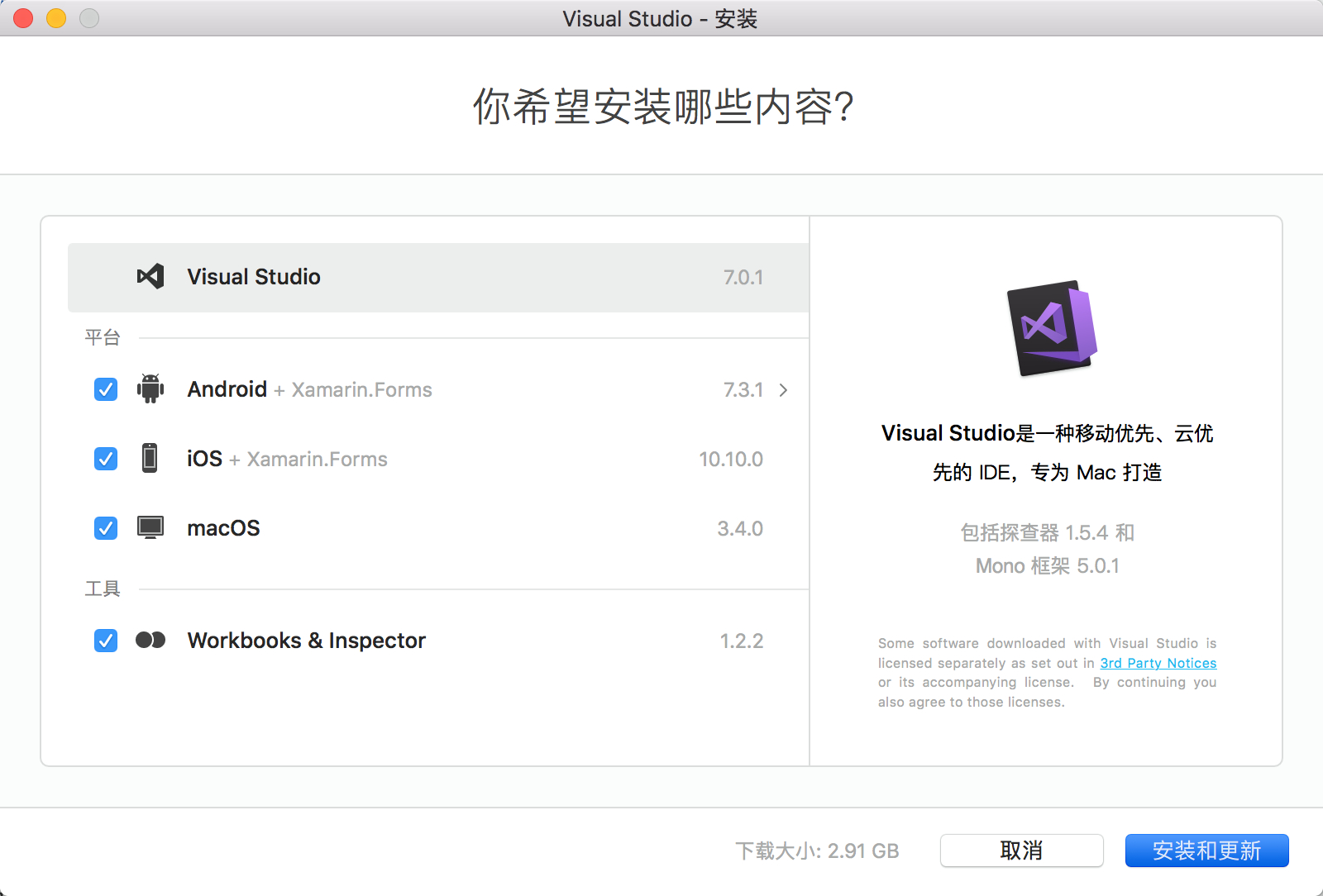 Visula Studio for mac安装时程序无响应