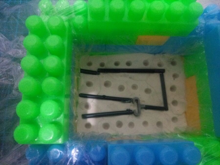 还是最基本的,做模,下件,摆流道,定位孔,成模,注料,搞定,因为翻得简单,所以没注重细节,况且硅胶原料已经不行了,所以将就用就得了