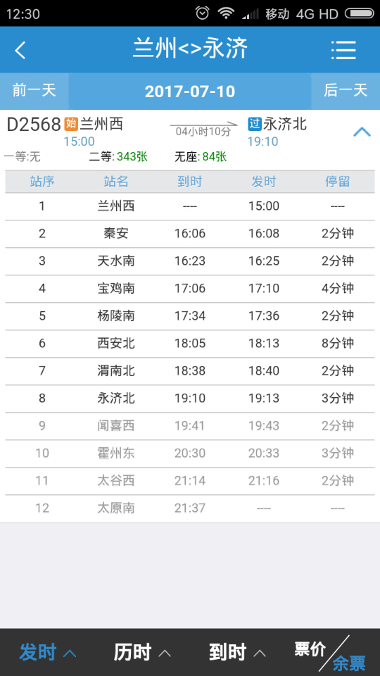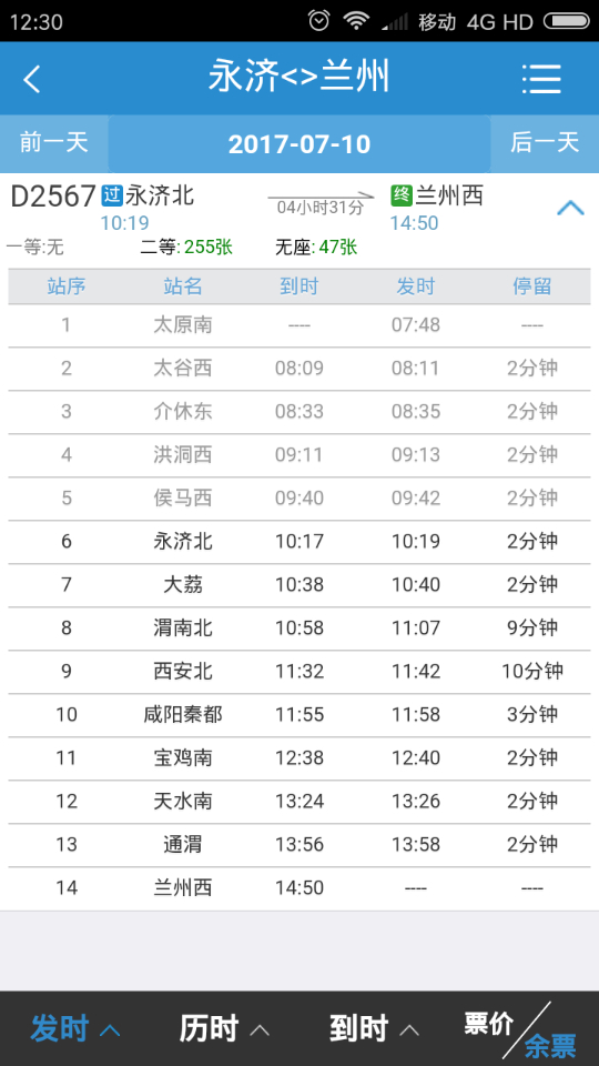 永济北站最新列车时刻表
