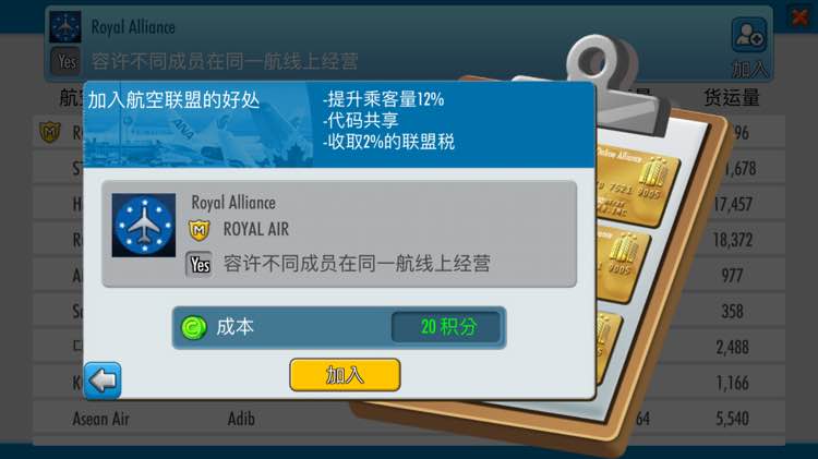 加入联盟是为了给小公司生存的方案,选择同联盟的其他公司航线,如果可以联营,在航线的背后有个申请字样,点击申请联营。对方通过之后就可以进行联营状态。