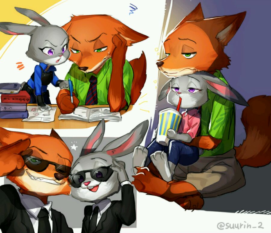2.于是,两兽就闹了一路,到警局之后,尼克捂着脸,朱迪红着脸。