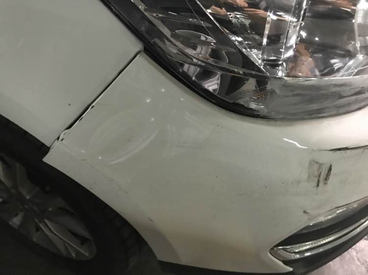 我第一次还是自己撞的,差不多也是你这个位置,还好速度不快伤得轻。你至少还能赔偿去修。