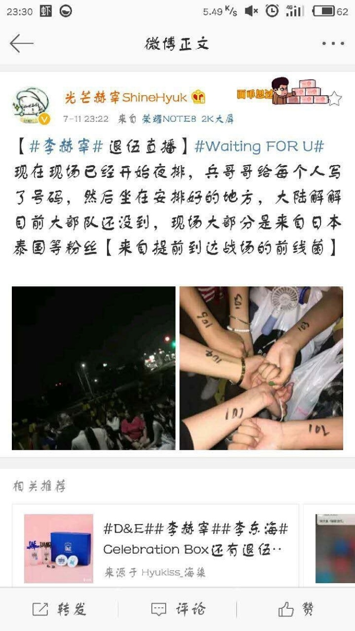 〓NeverEnd〓170712●消息●龐大粉絲軍營外夜排 迎接赫宰退役
