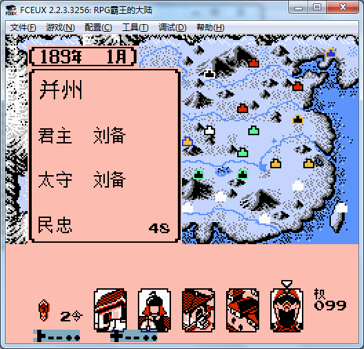 ②按select或start之后,可向下翻页显示武将头像,此时确认不进入“演示”,而是以在野身份进入游戏(无视出仕年份),并直接获得不可被搜出标志。
