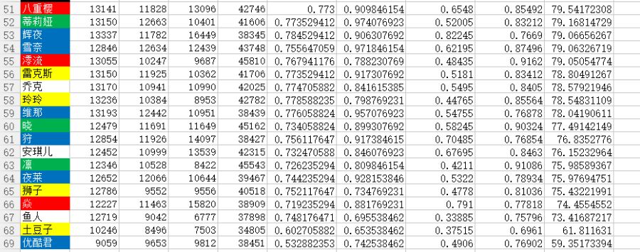 下面是坦克和辅助的加权后排名