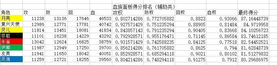 辅助:对照14000攻,17000防,20000回,50000血。加权30攻+10防+50血+10回