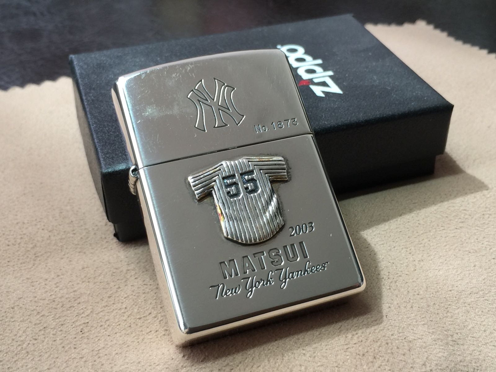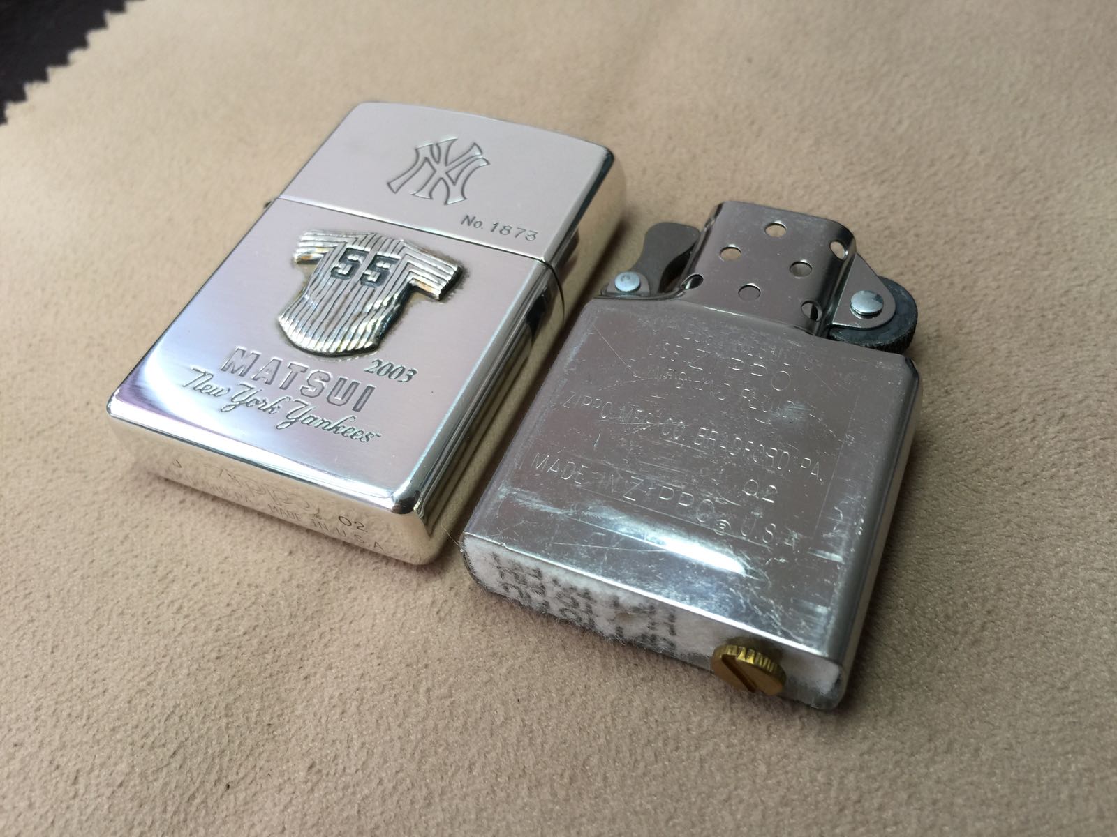 【具体描述】全新2002年棒球球衣系列 扬基队55号 限量镀银机 编号1873。镀银底板双面蚀刻+精美球衣贴章工艺。机身运输不当,多处磨损擦痕强光拍出(正常角度不怎么明显)定义全新差品。原配全新2002I内胆,近代黑纸盒包装。