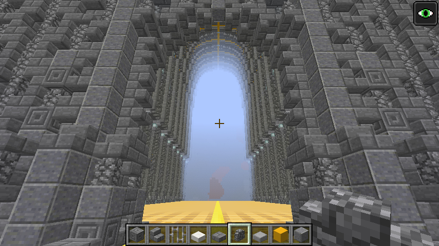 建筑主题颜色太暗,和身后山体岩石没有区分度,,我建议给建筑装上比较明显的旗帜用地基把建筑稍微垫高,然后可以在建筑周围的悬崖上刷上瀑布然后配合雪地冻起来 。并在周围加上斜着的冰刺