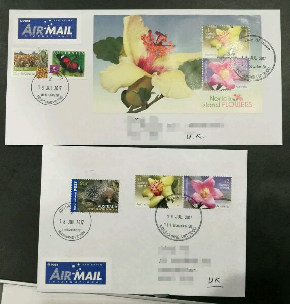 2017年7月18日,澳大利亚邮政发行诺福克群岛的花卉邮票一套2枚,面值3澳元,另发行小全张一枚。