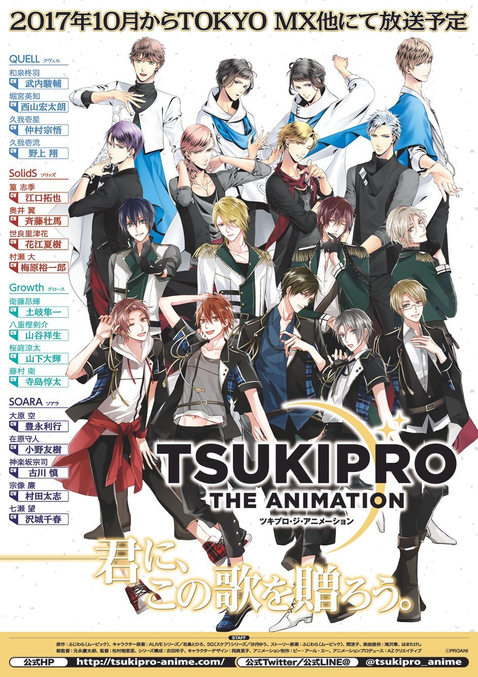 《TSUKIPRO THE ANIMATION》AZ Creative,动画公司PRA负责动画制作,声优方面宣传图上写的很清楚