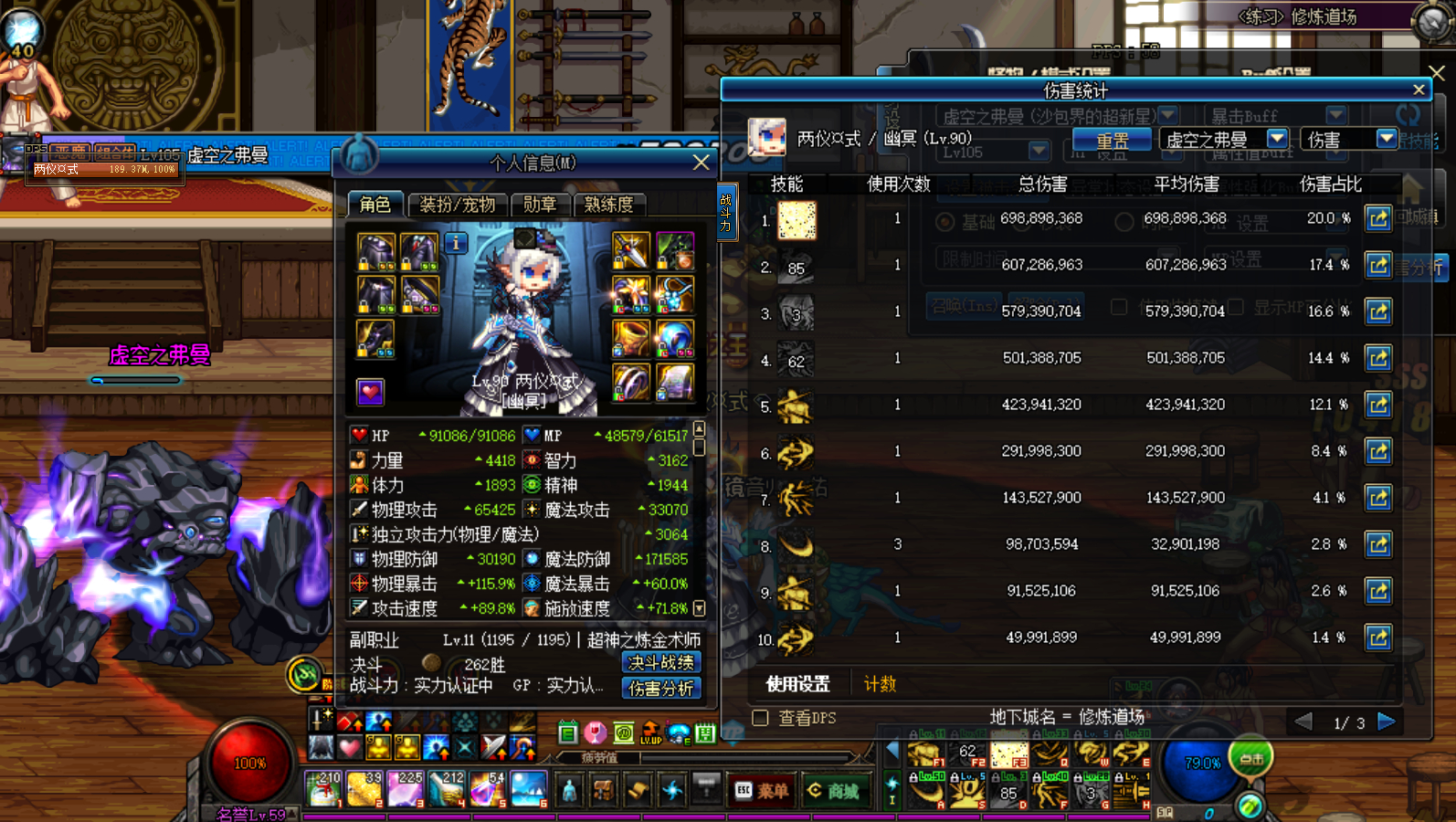 这就是大佬吧!但是我也很黑,就只有恍惚。没武器,没石碑,英雄王,时光差鞋子。伤害大佬一半都没有。