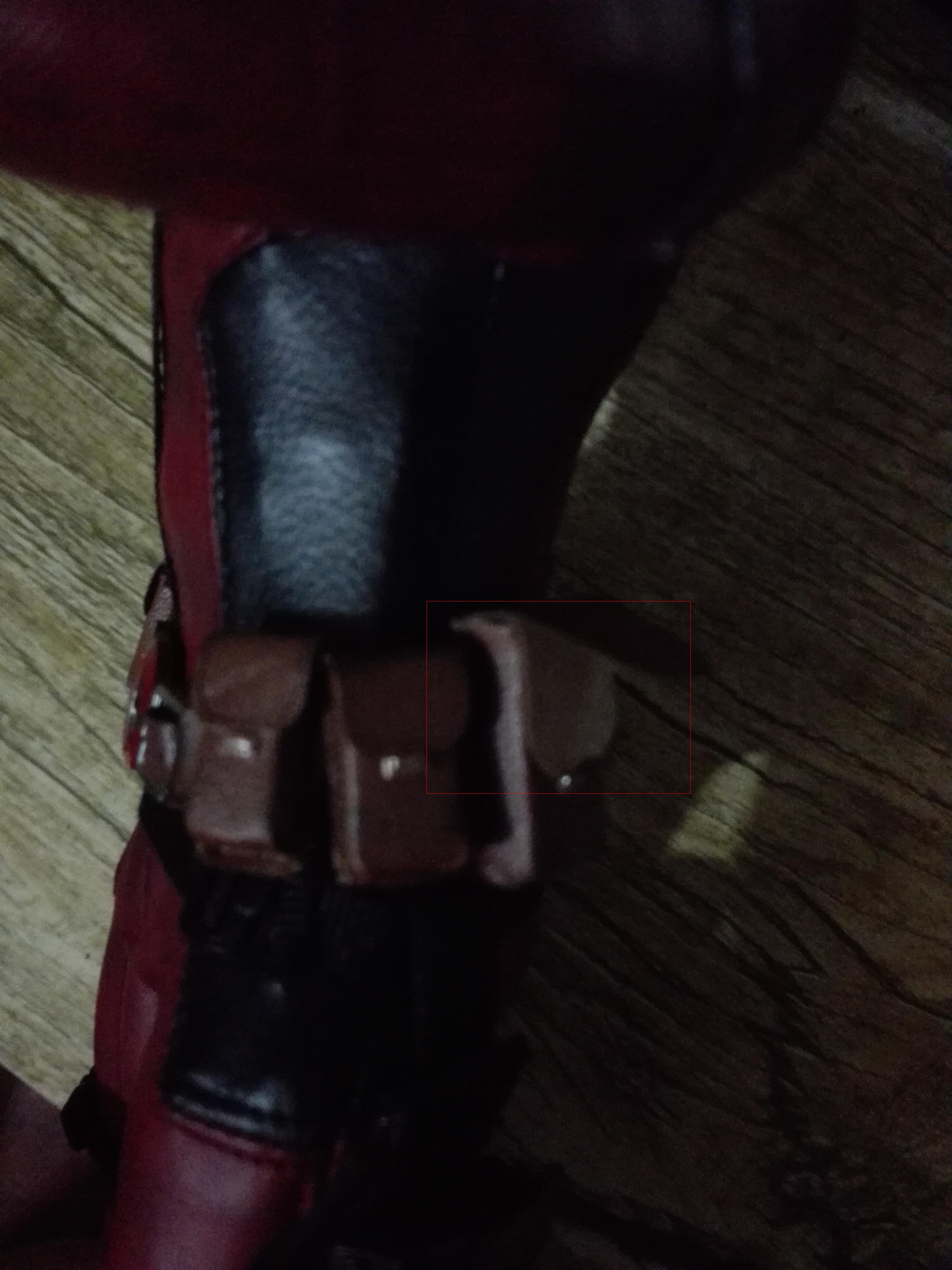 看红圈。一个背包的盖子掀起来了,随便怎么都能粘上。就这一点。