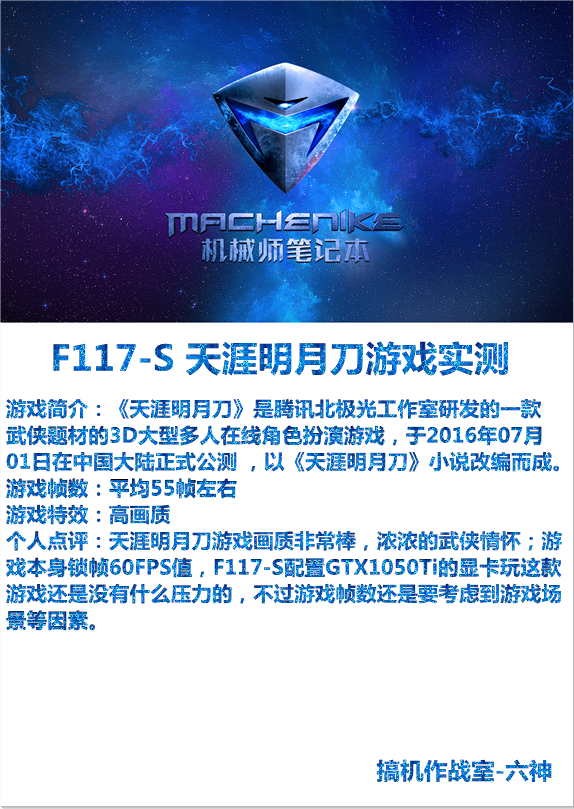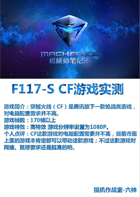 【搞机帮】机械师笔记本F117S GTX1050TI版 网络游戏实测