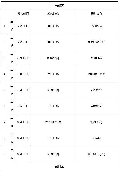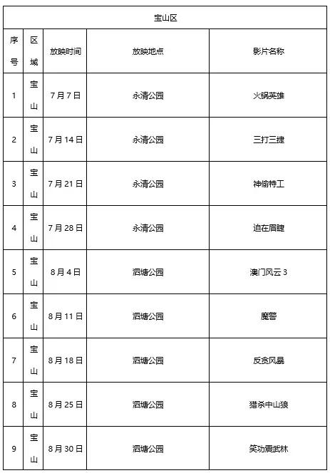 全市16个区的公园绿地将免费放映150余场次电影
