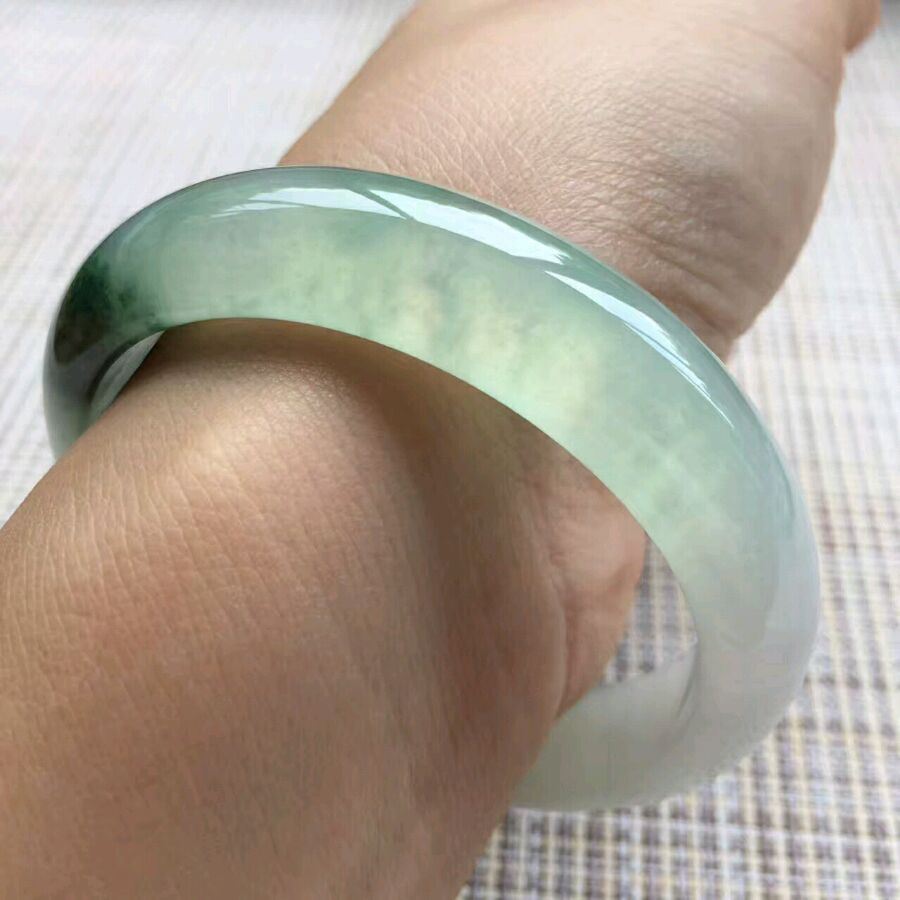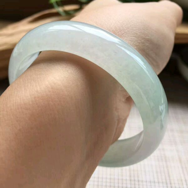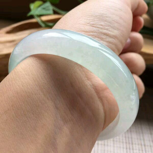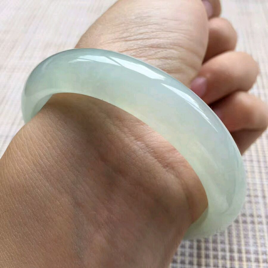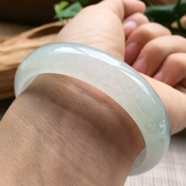 7.白底青正圈,尺寸:54.8-11.2-6.5,底子细腻白净,水头好,内侧有丁点指甲纹可忽略,清新脱俗,特价💰4999