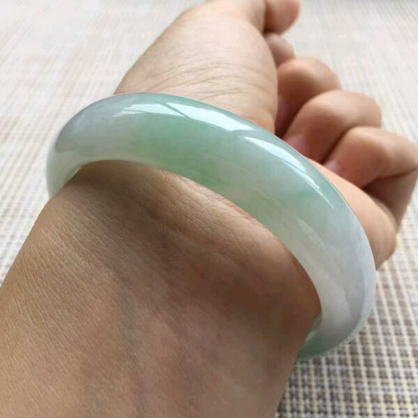 3.冰种飘花正圈,尺寸:56.7-13.7-7.5,水润亮泽,意境优美,版型端庄,局部位置冰透起光,打灯有点棉纹,肉眼不显,上手气质佳,推荐价💰15800💎
