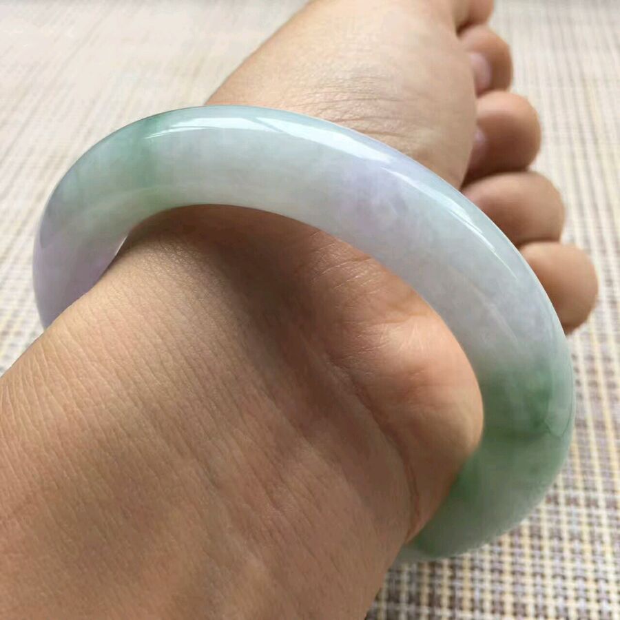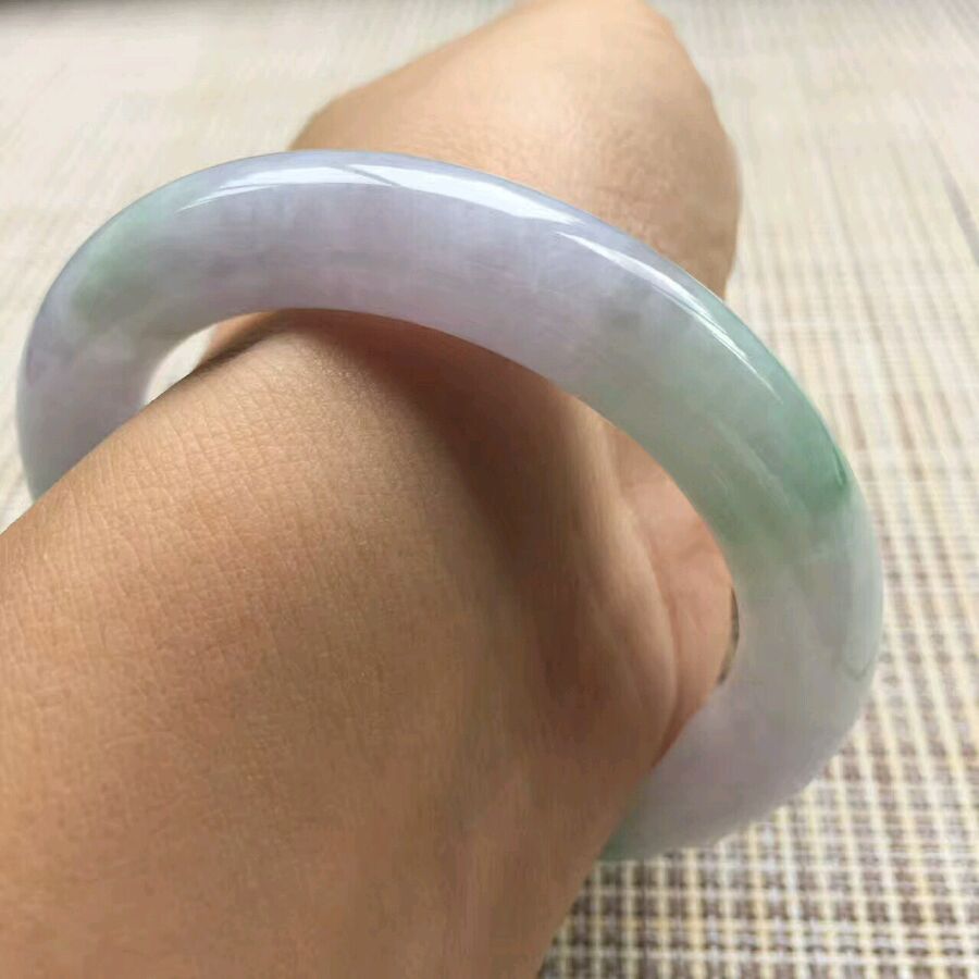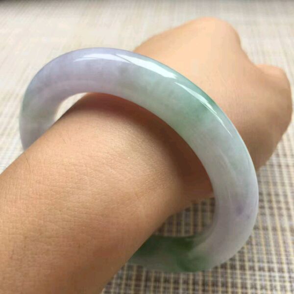 10.春彩胖圆条,尺寸:55.5-11.5-11,老坑种,色泽鲜明,品相好,有少许晶体纹属翡翠天然内部结构,不影响整体佩戴效果,推荐价💰7800