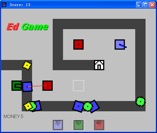 蓝色炮台:造价30,射速均匀,中等距离,伤害中等