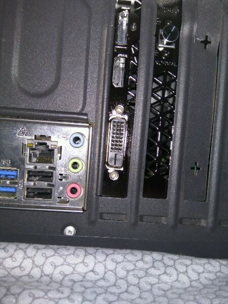 3、把你的显卡查到图片1,标注2的插槽上,后面的挡板应该正好可以对应的插进步骤1的位置,慢慢来,插进去放稳了,显卡挡板上的螺丝孔可以和机箱后挡板的螺丝孔对应即可