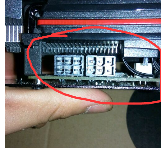 接口是这样的电源线,一个6pin(孔)就可以了,如果没有也可以找到两个4pin的插在图片红圈对应的另一端转接也可以