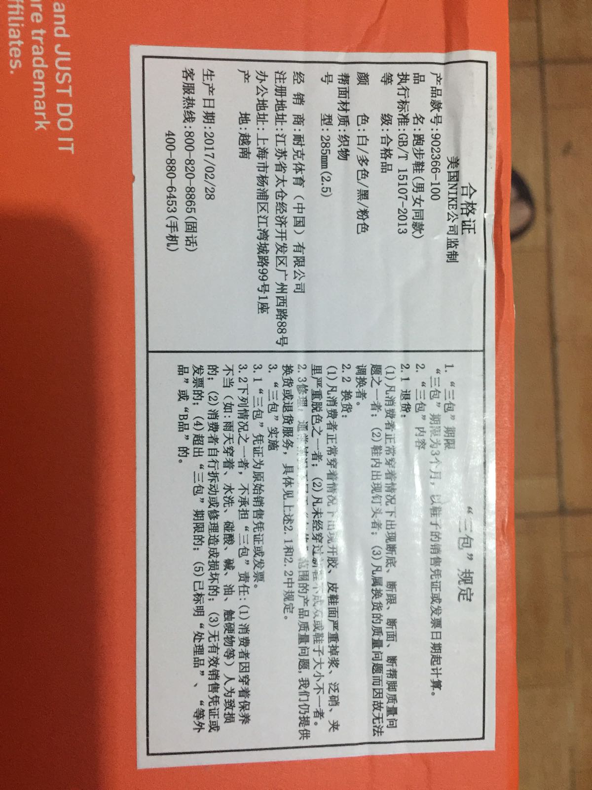 鞋盒侧标拍全,鞋盒钢印&鞋盒背面红色贴纸&鞋盒合格证,分别拉近补图。