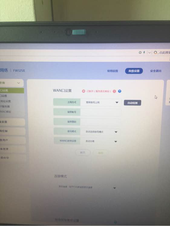 wan口设置已断开(服务器无响
