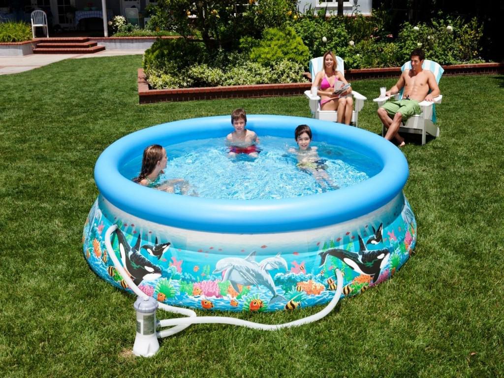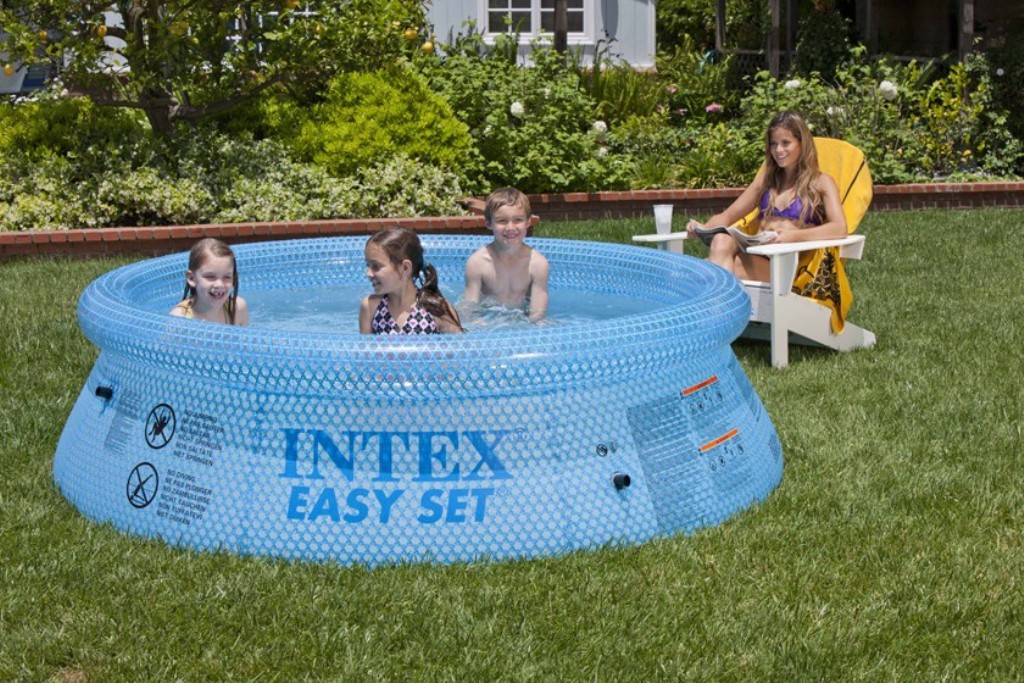 这大热天,在小院里打个家庭小型游泳池,游游泳,吃吃西瓜,喝点橘子水,舒服!