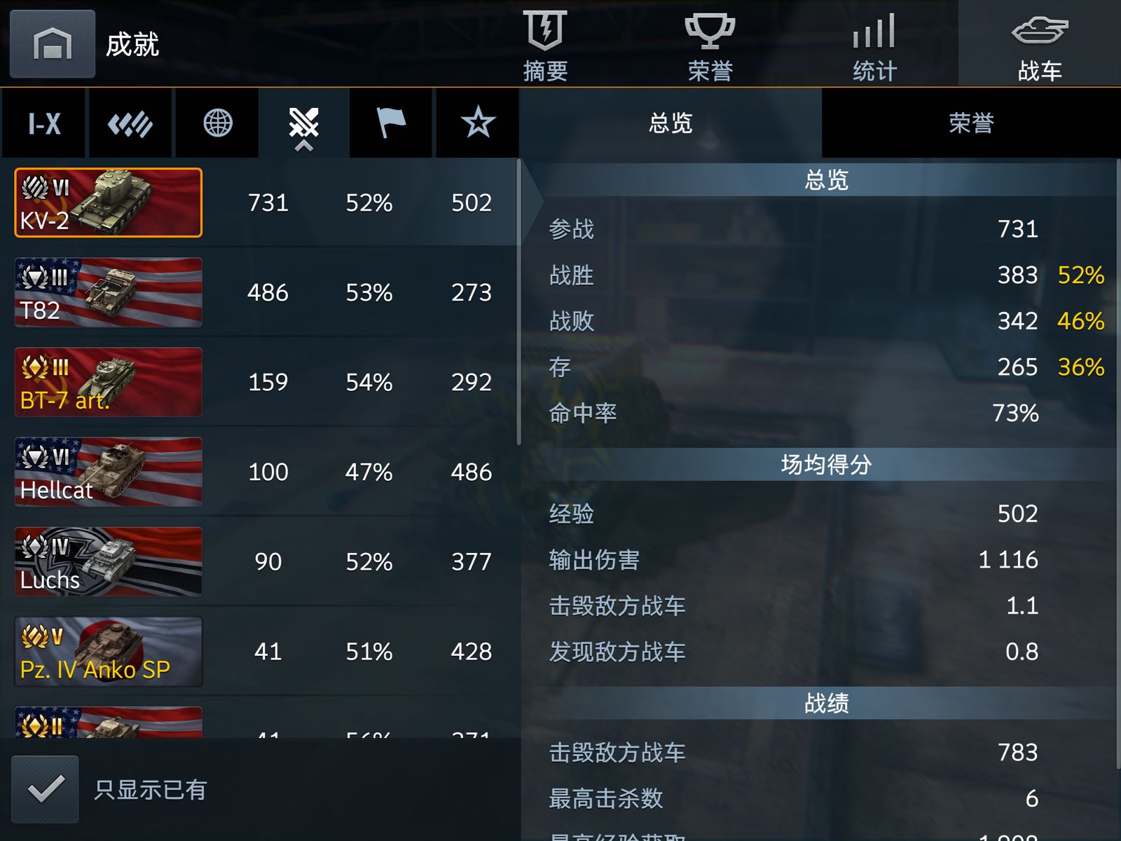 我500多场都有虎式了