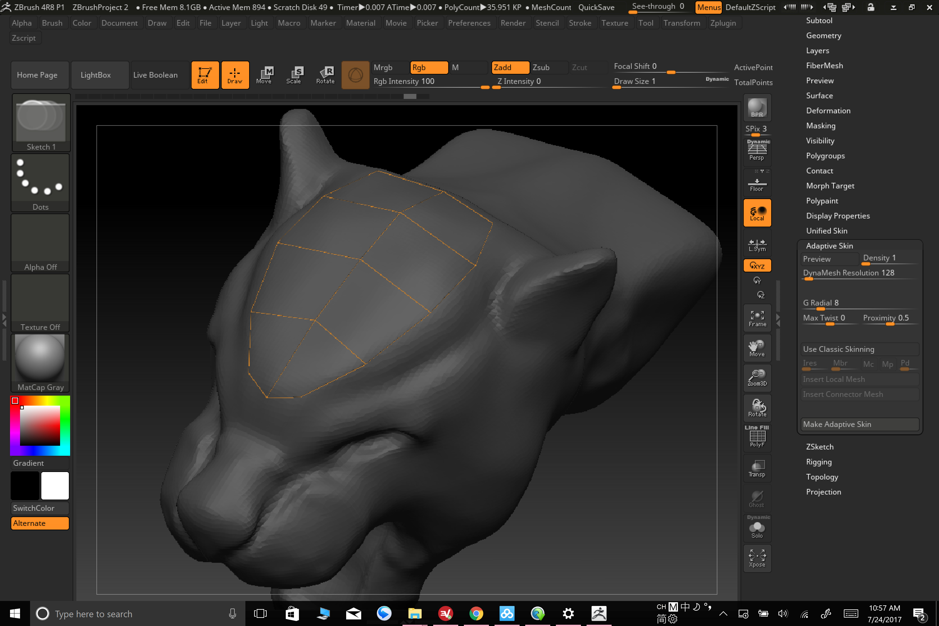 新人自学硬表面雕刻,用z球然后选择模型,然后 edit topologhy,可是一旦确定后表面不是很平整,和教程中的不太一样,查了很多也不知道怎么解决,求大佬帮帮忙