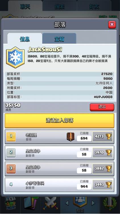 部落招人啦,清退了一批不上线的,35人都能达到周捐1w,部落宝箱10级
