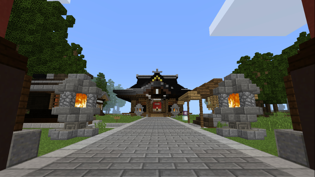 今天来介绍一下博丽神社,我们可以通过传送指令到达这里,每次进服务器也是生成在这里。
