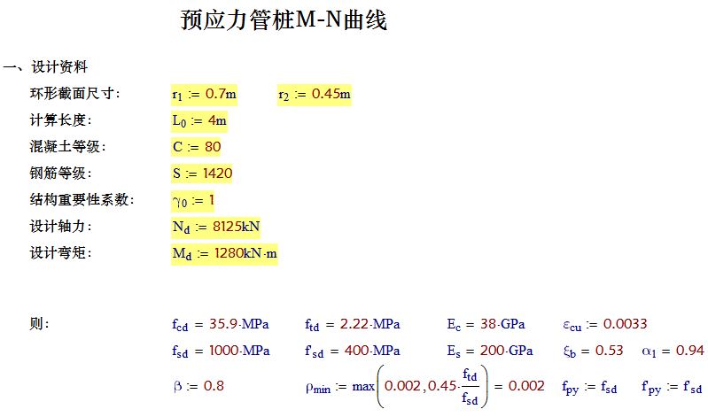 顺便做了个预应力管桩的M-N曲线,但和图集里的有些出入,望指正