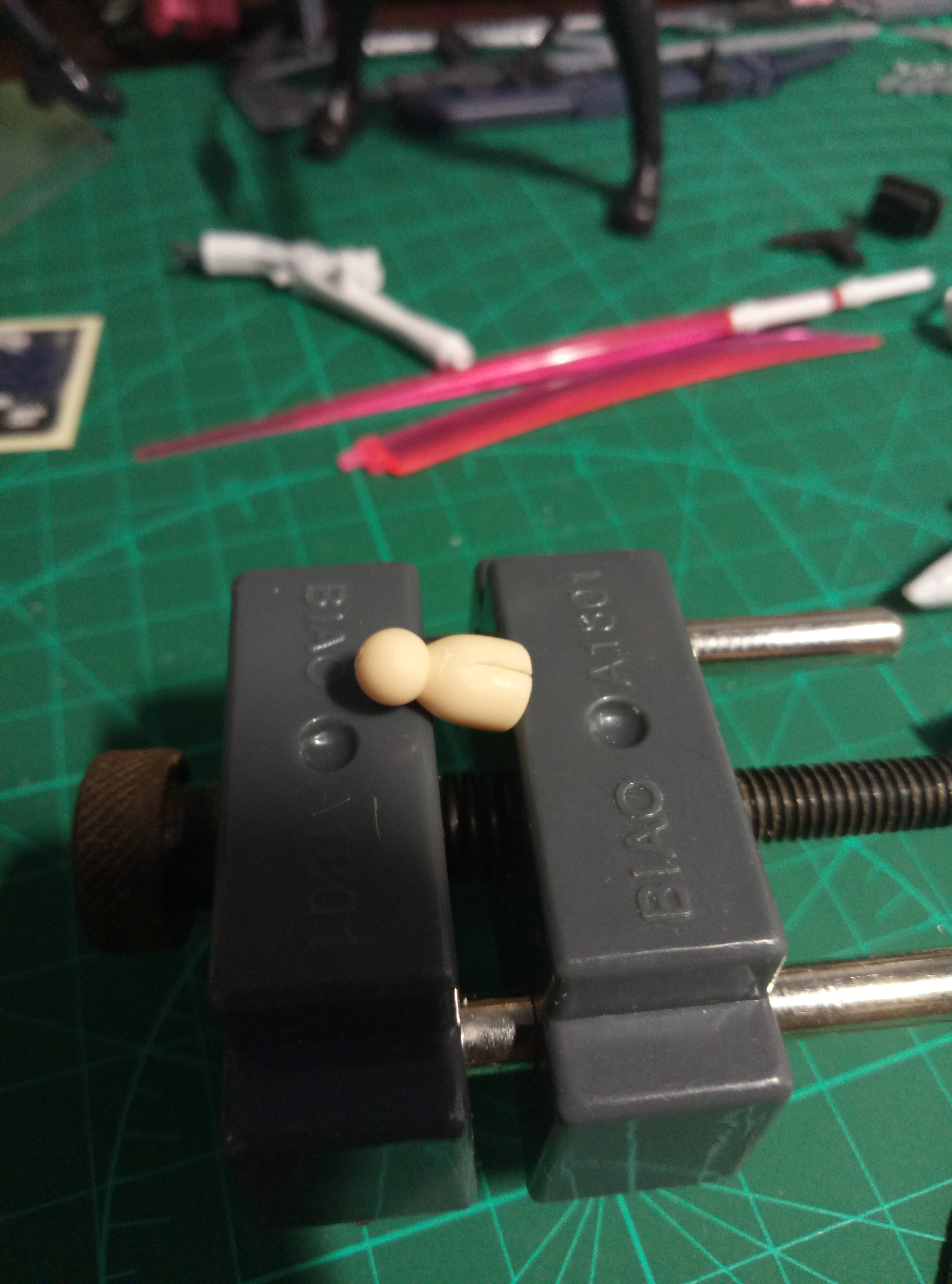 今天用钟表油给素体的头部连接球窝关节上油的时候拔了下来,接着装上去就发现装不上了,然后就发现球窝出现了裂缝,