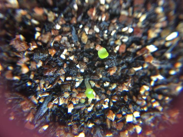 7.27播了30粒多彩混合(说实话我也不知道具体是什么跟什么混合……)今天上班目测出来7颗,但是可能光线不好,齐刷刷的都是黄色豆芽状,赶紧放到窗台边上散光一下吧