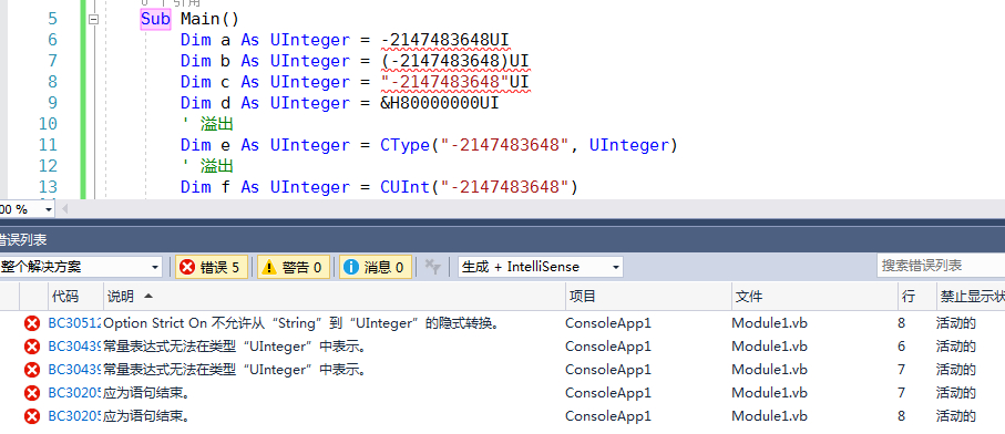 Dim a As UInteger = &H80000000 不行啦,因为 &H80000000=-2147483648超出了UInteger的范围;